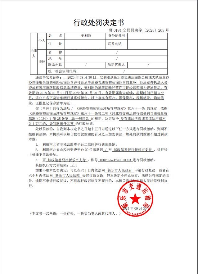 安利刚涉嫌擅自使用失效的道路运输经营许可证从事道路货物运输经营等行为案