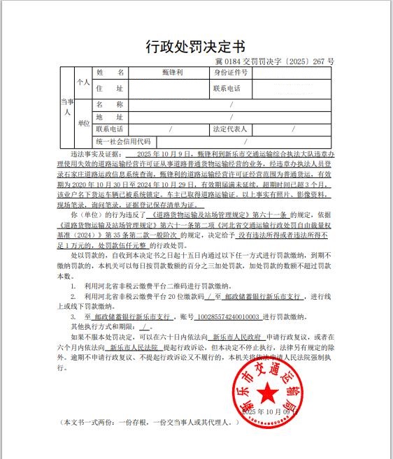 甄锋利涉嫌擅自使用失效的道路运输经营许可证从事道路货物运输经营等行为案