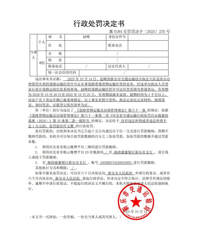 赵峰涉嫌擅自使用失效的道路运输经营许可证从事道路货物运输经营等行为案