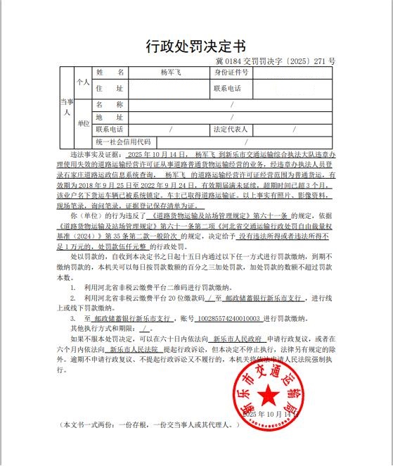 杨军飞涉嫌擅自使用失效的道路运输经营许可证从事道路货物运输经营等行为案