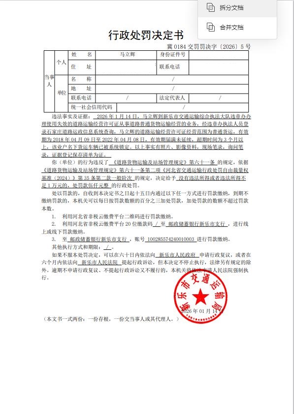 马立辉涉嫌擅自使用失效的道路运输经营许可证从事道路货物运输经营等行为案