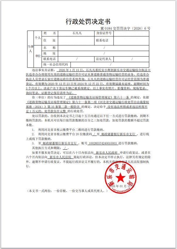 石凡凡涉嫌擅自使用失效的道路运输经营许可证从事道路货物运输经营等行为案