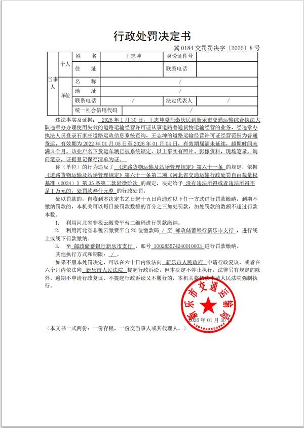 王志坤涉嫌擅自使用失效的道路运输经营许可证从事道路货物运输经营等行为案
