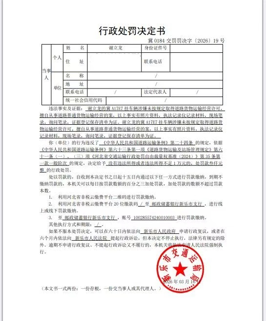 谢立龙的冀A17E7挂车辆涉嫌未按规定取得道路货物运输经营许可,擅自从事道路普通货物运输经营的案