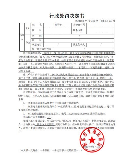 杜子午驾驶冀A7J390车货总质量超过公路限定标准的车辆在公路上擅自行驶行为案