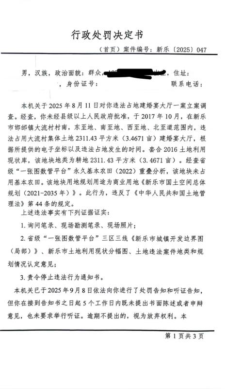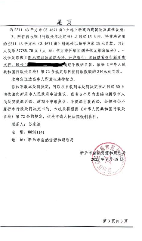 新乐市自然资源和规划局行政处罚决定书(新乐[2025]047)