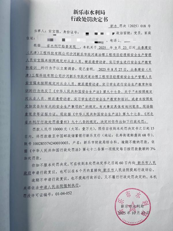 新乐市水利局行政处罚信息公开新水罚决(2025)018号