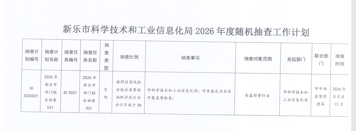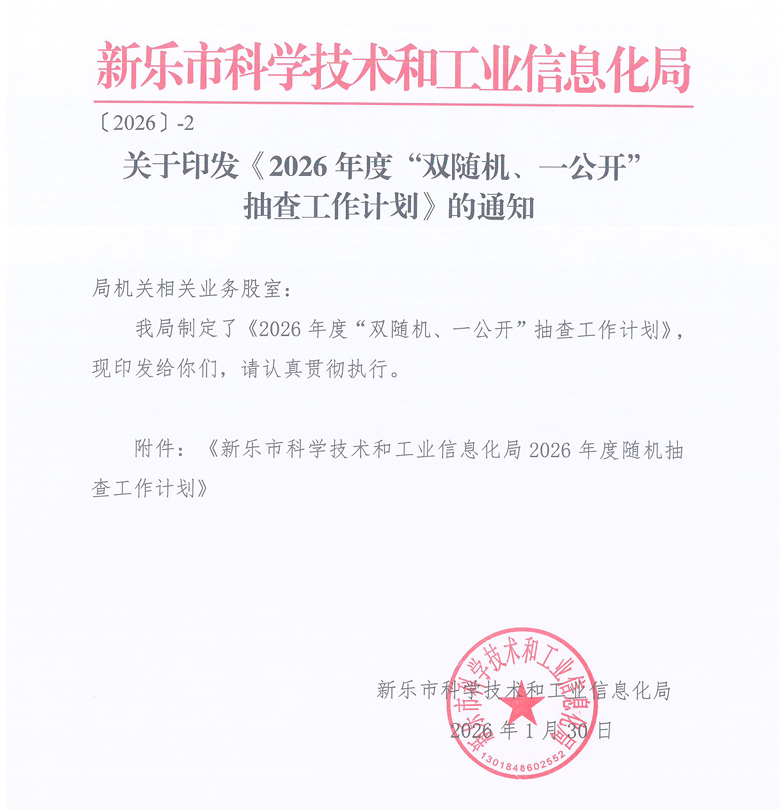 新乐市科学技术和工业信息化局关于印发《2026年度“双随机、一公开”抽查工作计划》的通知