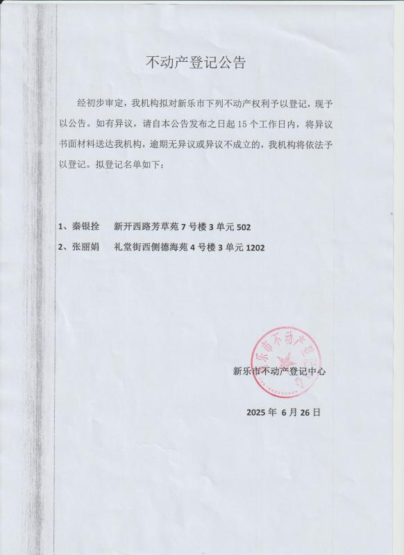 不动产登记公告(芳草苑1宗、德海苑1宗)
