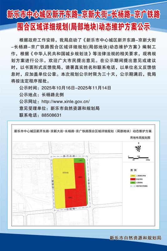 新乐市中心城区新开东路-京新大街-长杨路-京广铁路围合区域详细规划(局部地块)动态维护方案公示