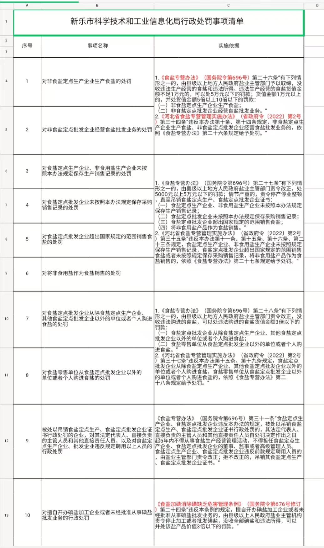 新乐市科学技术和工业信息化局行政处罚事项清单