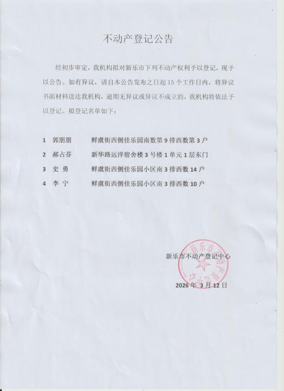 不动产登记公告