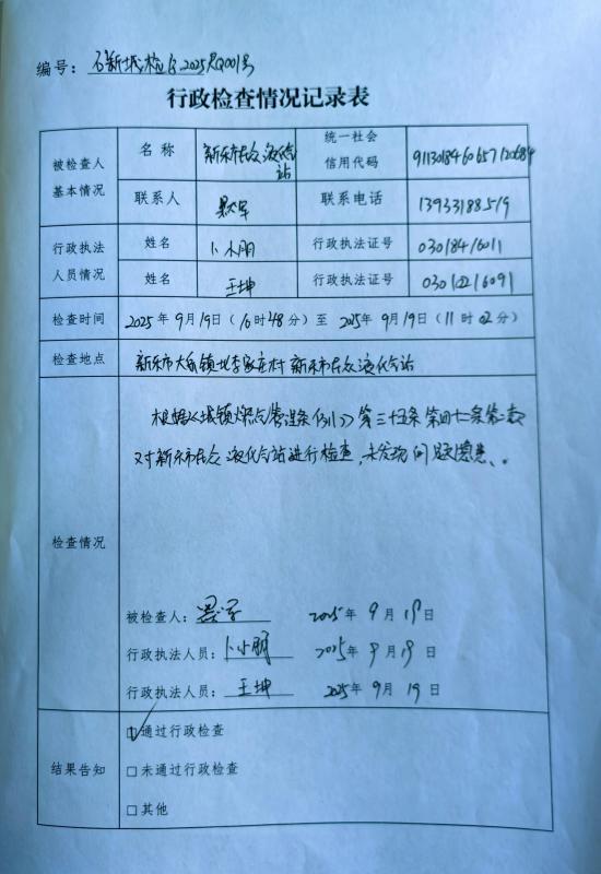 新乐市城市管理综合行政执法局行政检查结果公示(新乐市民众液化气站)