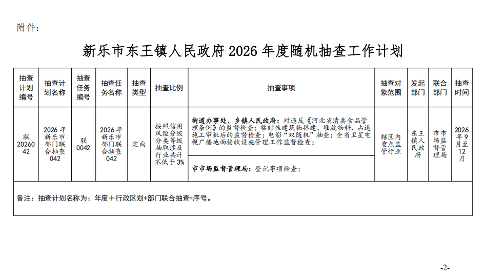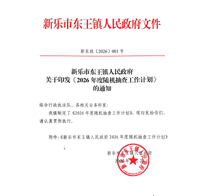 新乐市东王镇人民政府关于印发《2026年度“双随机、一公开”抽查工作计划》的通知